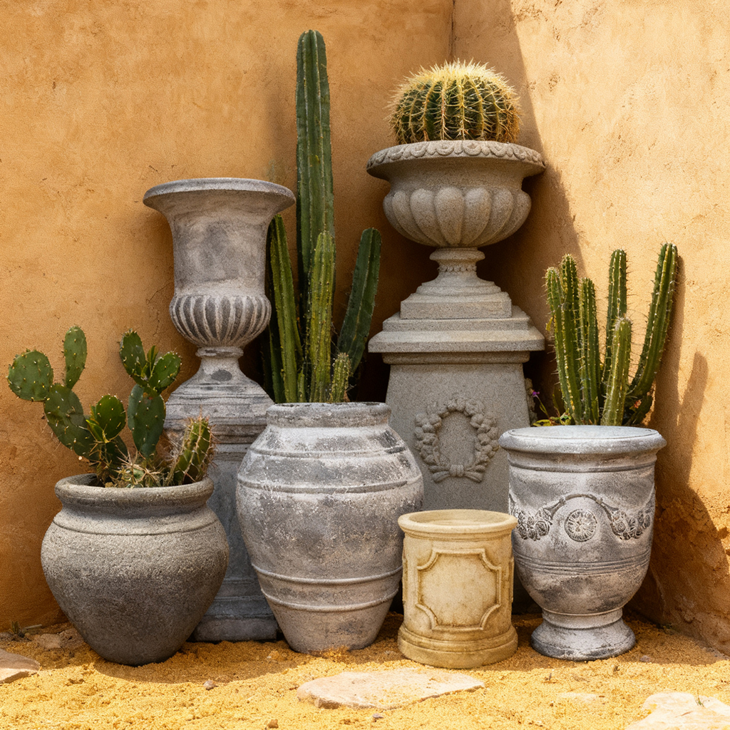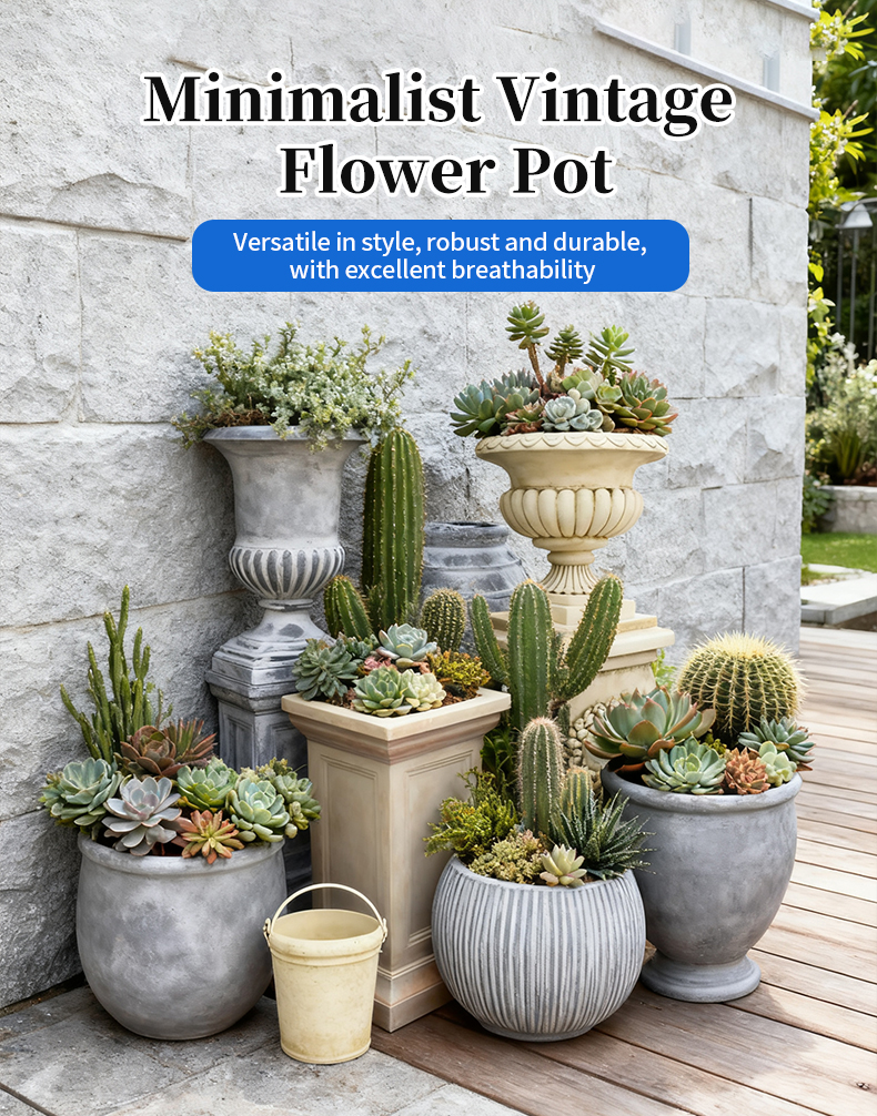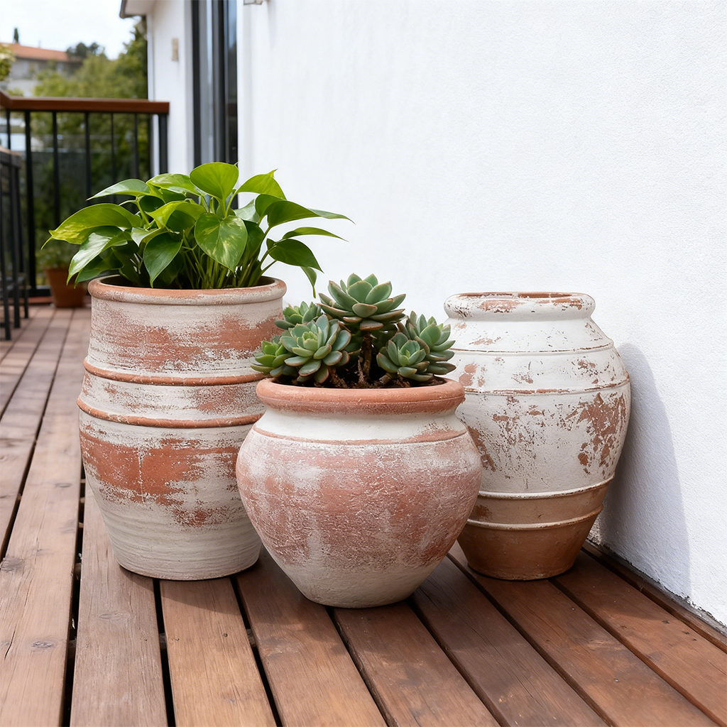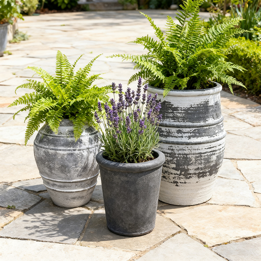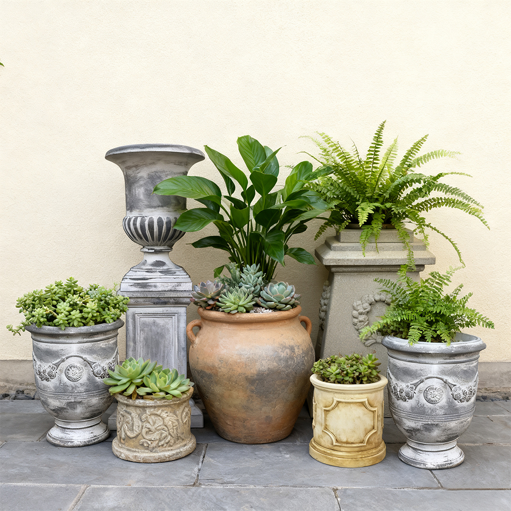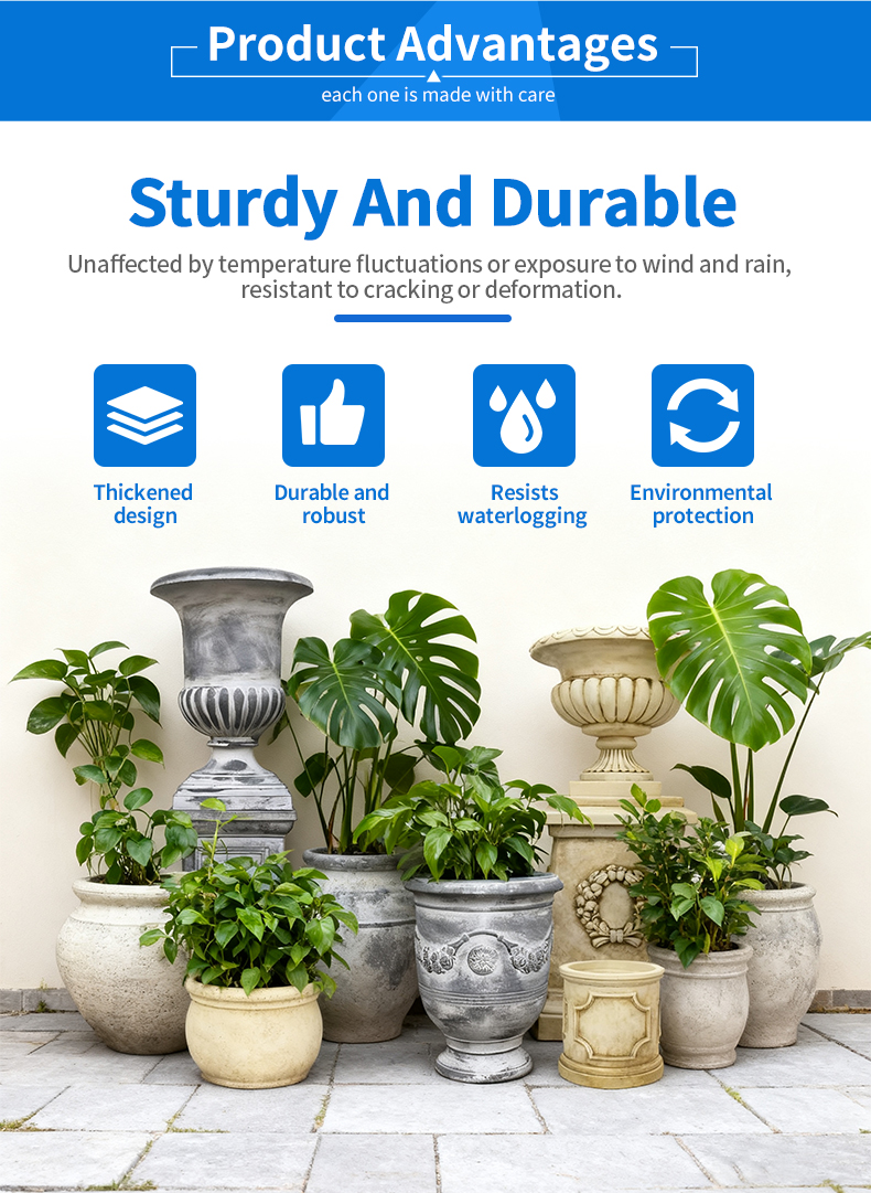 Decorative Outdoor Garden Urn Planters Set - Weatherproof Resin Flower Pots for Patio, Lawn & Outdoor Landscape Styling