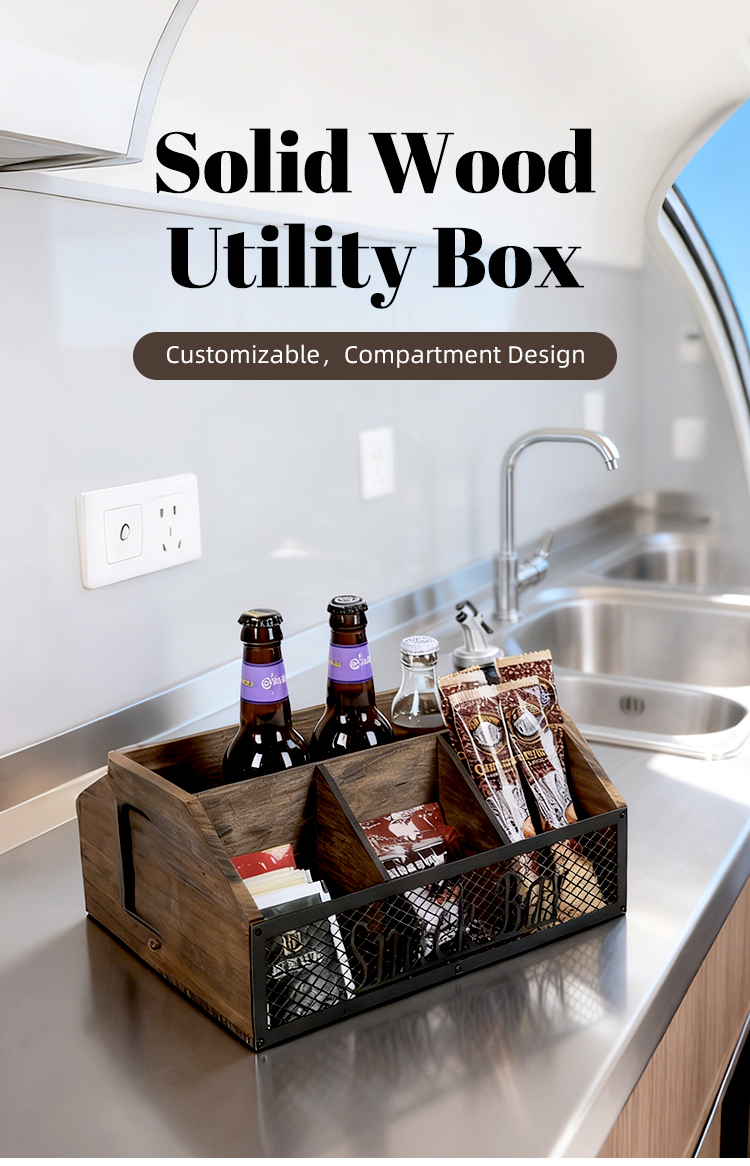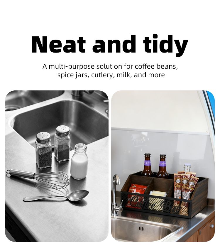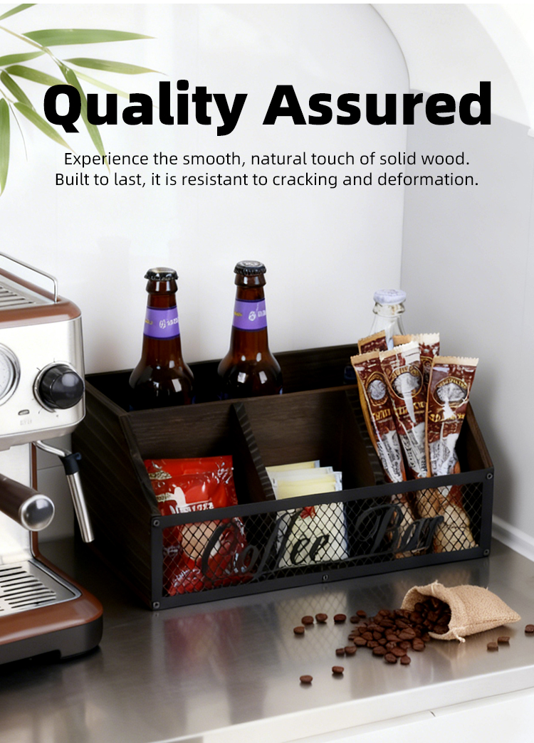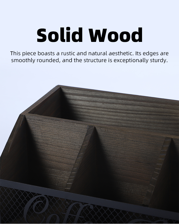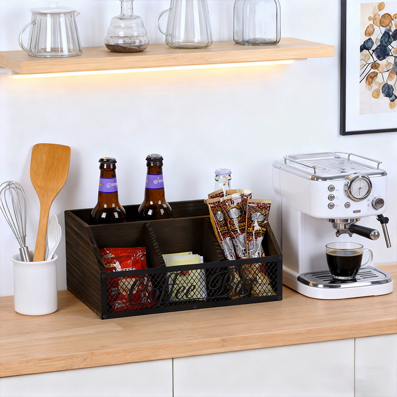 Retro wooden metal mesh coffee bar storage box, desktop multi-compartment classified storage box, wine and snack organization box