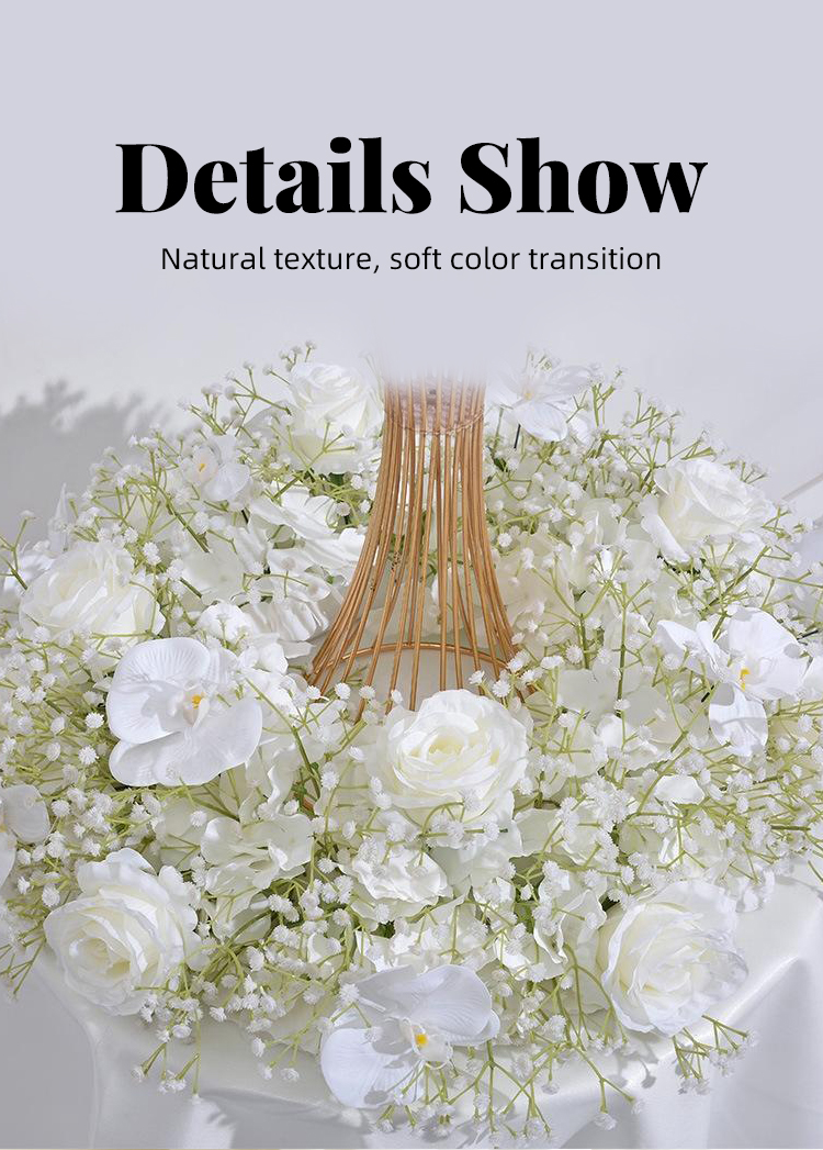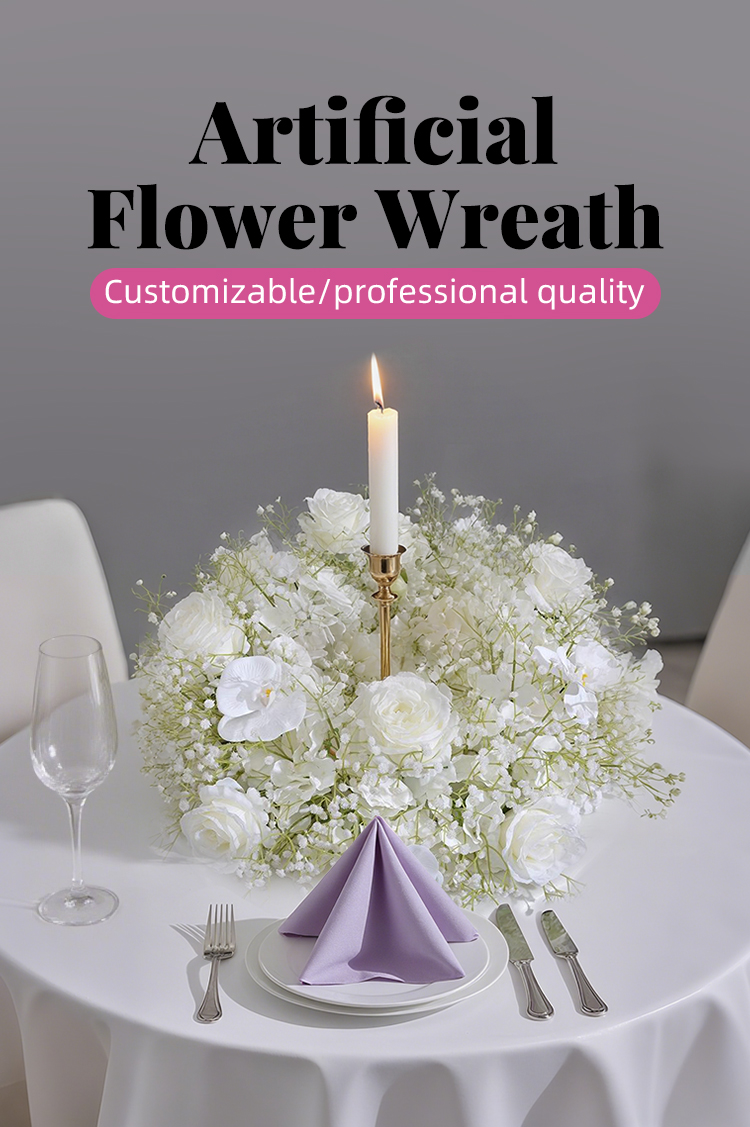 The white series of light luxury dining table floral art set includes a candlestick and a high-end central decorative flower for wedding banquets