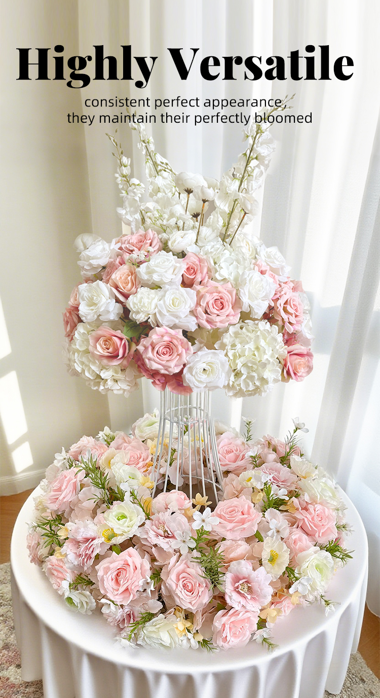 Highly adaptable pink-themed artificial floral center decoration for wedding banquets, versatile table flowers for multiple scenarios