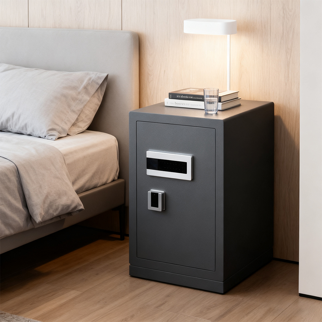 Multi-functional smart safe bedside table: Fingerprint + password dual lock, providing dual protection for bedroom storage and security